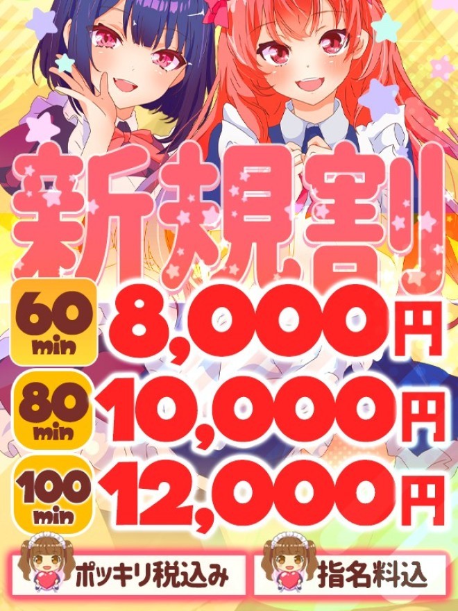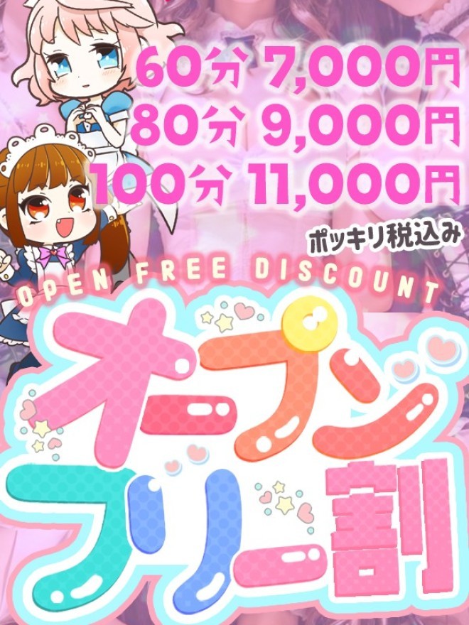 とってもかわいい未経験の女の子達が 毎日たくさん出勤中🥹 º·˚.💓オープンフリー割💓.˚‧º 女の子選びはお任せください💪🏻 通常60分9,000円、80分11,0...
